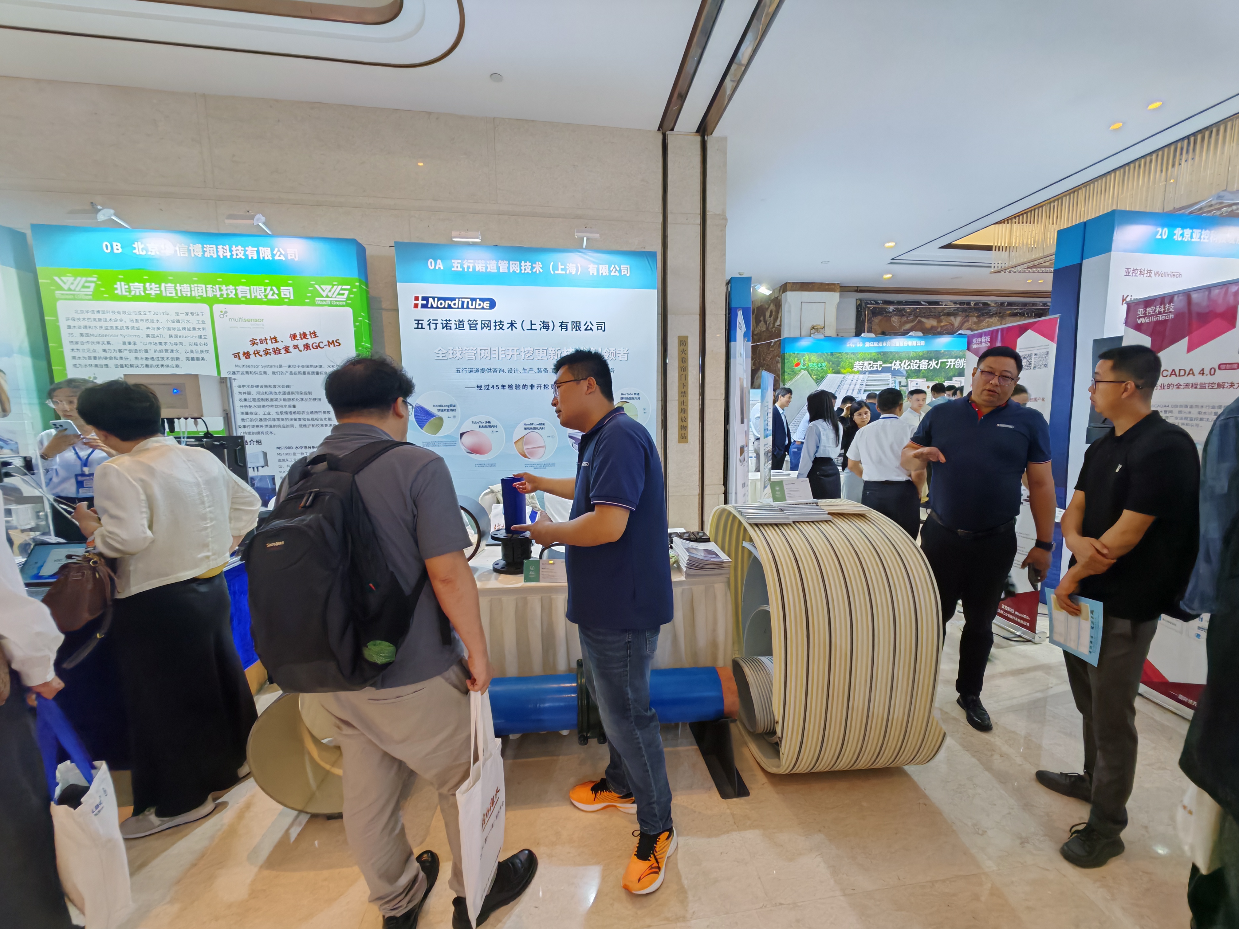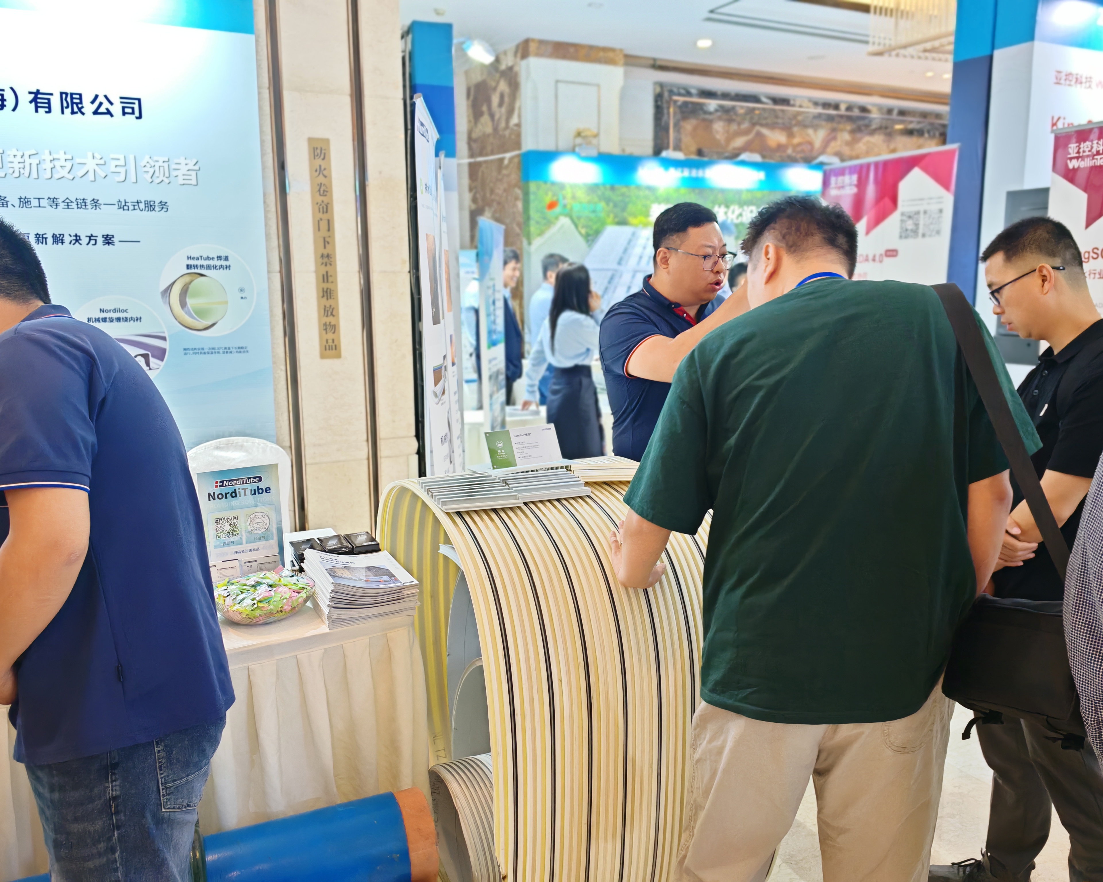 除了精彩的主論壇分享,五行諾道展臺同樣人氣火爆。現場技術工程師團隊圍繞非開挖修復流程、材料優勢、典型案例等進行詳細講解,吸引了眾多參會嘉賓駐足交流,反響熱烈。不少業內專家表示對“智慧修復+高效實施”模式深感興趣,希望進一步了解合作機會。